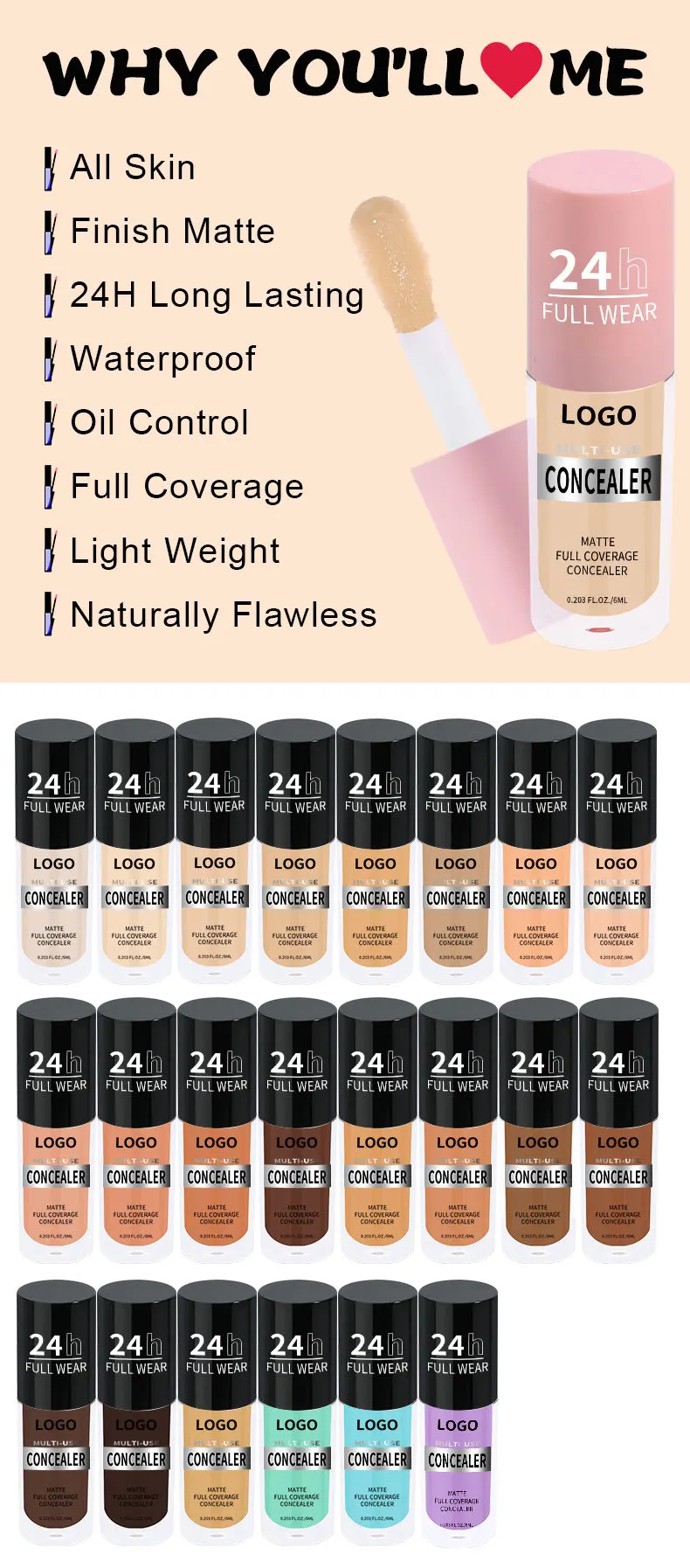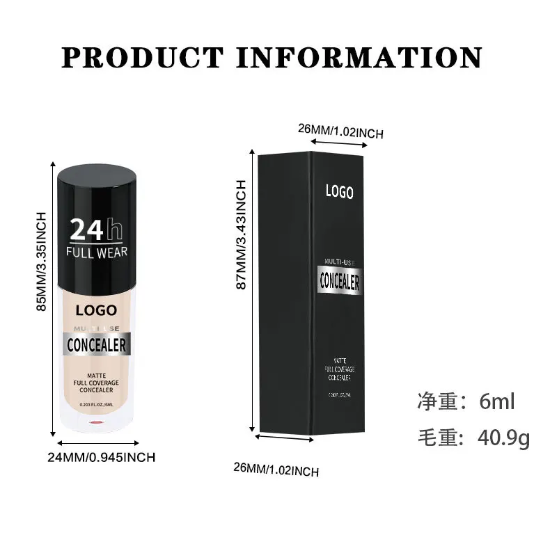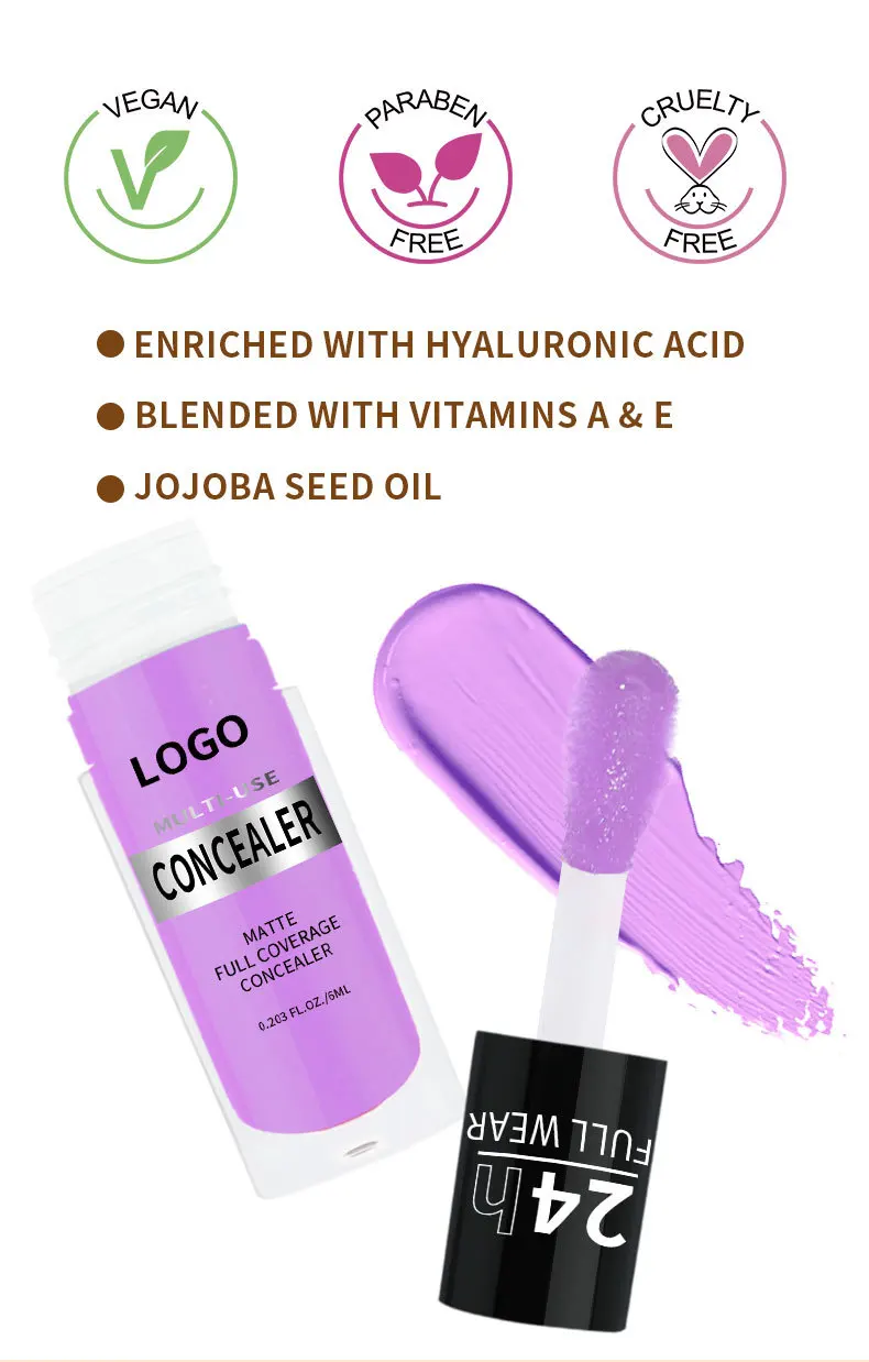 24 Hour Long Wear Matte Full Coverage Hydrating Liquid Concealer Custom logo Waterproof HD Liquid Concealer for All Skin